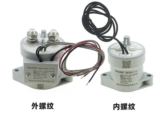 在高压直流继电器的外观结构设计中,常见的接口形式包括外螺纹和内螺纹两种,这两种接口形式在接线和安装方式上存在一定差异,适用于不同的安装环境和应用需求。
